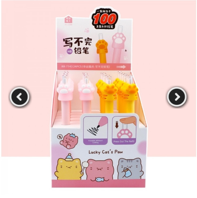 نوشتن با طرح پنجههای نرم! مداد بینهایت طرح پنجه با تکنولوژی نوین گرافیت، نیازی به تراشیدن نداره و معادل دهها مداد معمولی براتون مینویسه. بدنه خوشدست و طرح پنجه برجسته روی درپوش، این مداد رو به یکی از محبوبترین لوازم تحریرهای فانتزی تبدیل کرده. 💖🐾✨