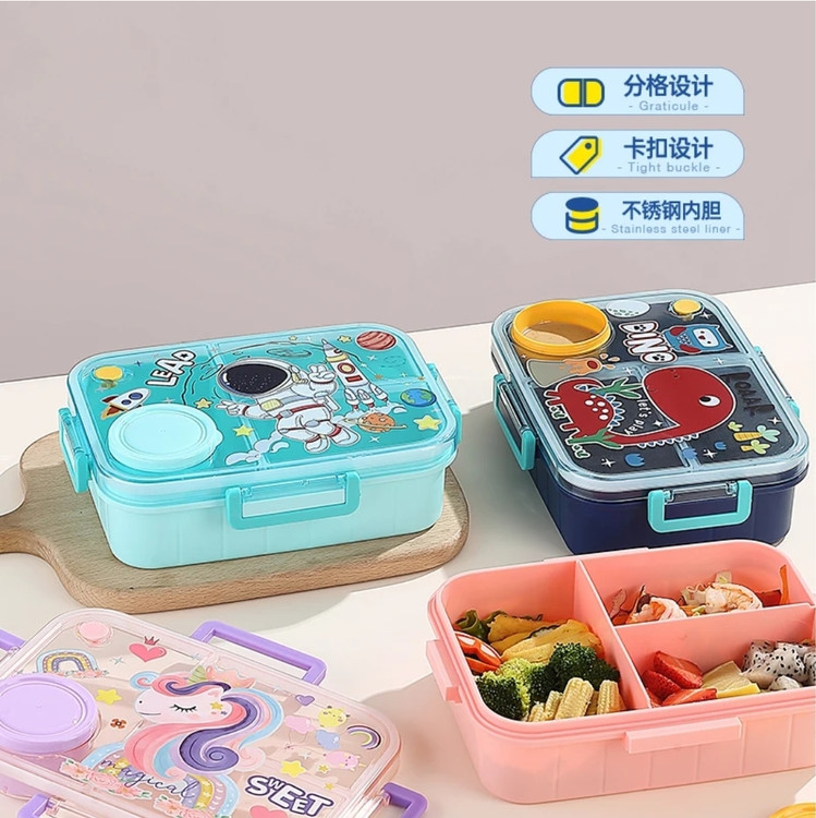 یه ظرف غذای هوشمندانه برای سختپسندها! این مدل جذاب یه کاسه مجزای داخلی داره که برای سوپ، ماست یا سالاد عالیه و نمیذاره با غذای اصلی قاطی بشه. طرحهای فضانورد، یونیکورن و دایناسور روی درش با تکنولوژی چاپ پیشرفته انجام شده و بسیار درخشان و زیباست. 🚀✨