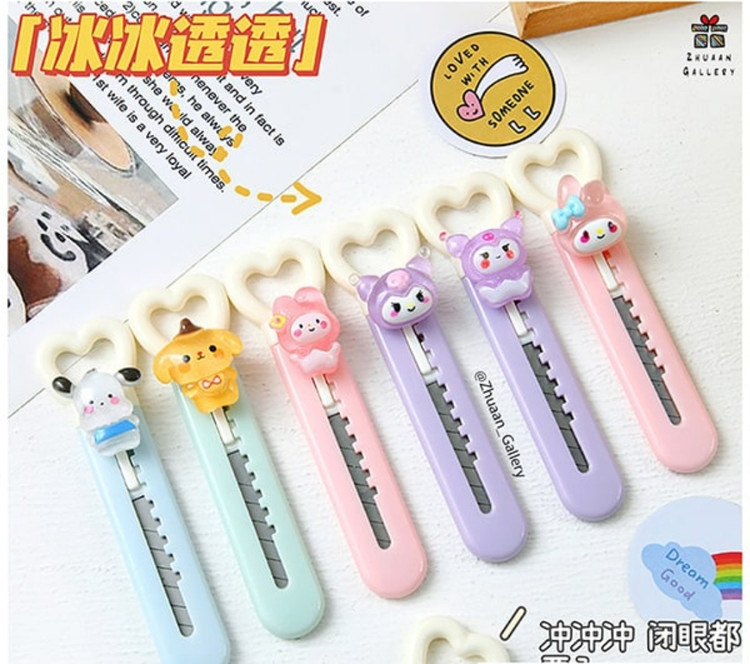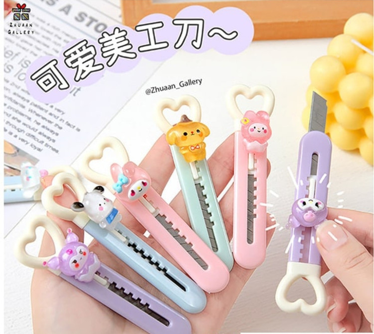 یه کاتر جیبی و فانتزی با طرح محبوب کرومی و دوستاش! این کاتر با ابعاد کوچیکش به راحتی توی جامدادی جا میشه و برای بریدن کاغذ، باز کردن بستهها و کارهای هنری عالیه. 💜✨