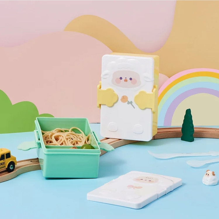 ظرف غذا فانتزی طرح ببعی 'یک طبقه تقسیم بندی شده همراه با قاشق و چنگال