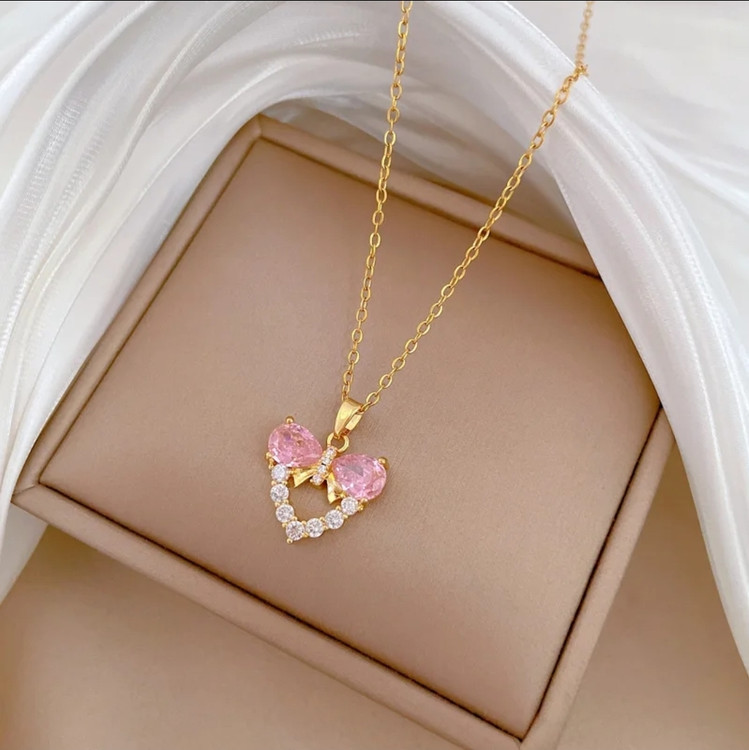 این گردنبند کریستالی با ترکیب قلب درخشان و یک پاپیون ظریف، دقیقاً همون اکسسوریایه که استایل شما رو به یک تابلوی نقاشی فانتزی تبدیل میکنه! درخششی که از دور چشمها رو به خودش خیره میکنه. ✨💖