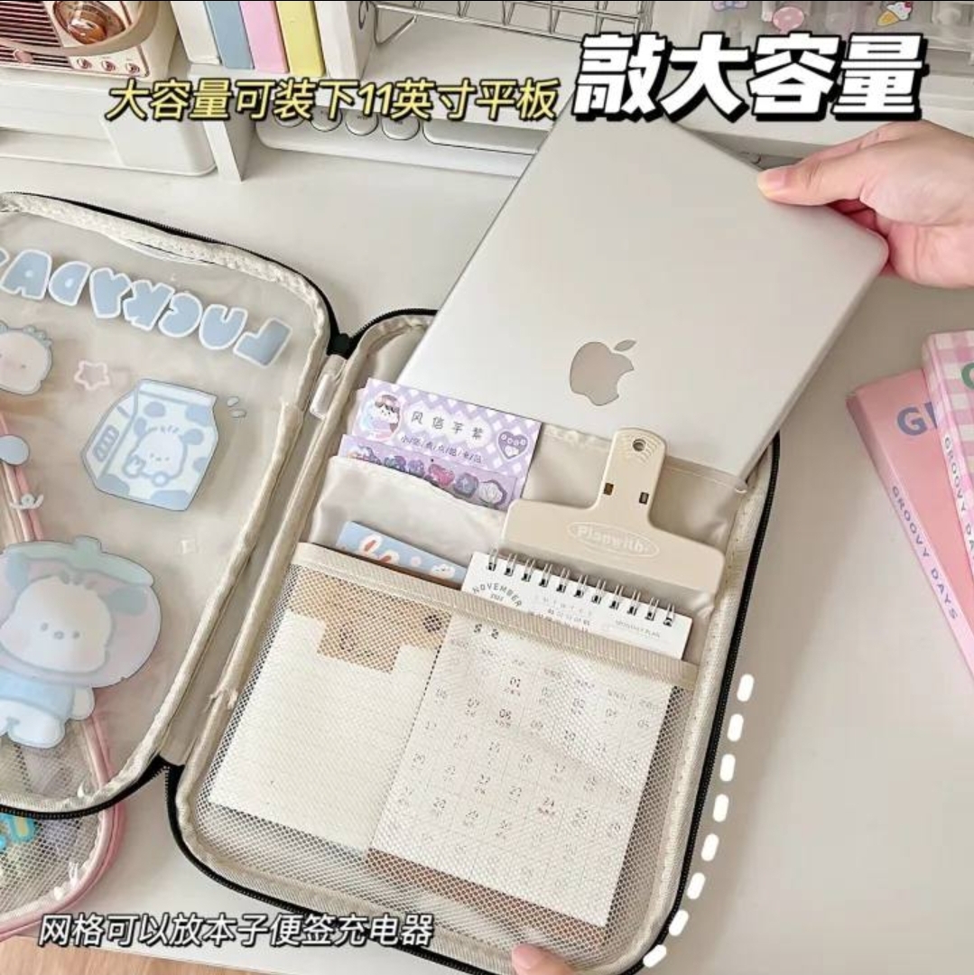 یه کیف وارداتی و فوقالعاده با کیفیت برای کسایی که دوست دارن وسایلشون رو با استایل حمل کنن! این کیف شفاف با طرحهای کیوت، هم برای آیپد مناسبه و هم برای لوازم شخصی بزرگتر. چون شفافه، پیدا کردن وسایل توش خیلی راحته و ظاهرش هم به شدت ترنده. 😍💻