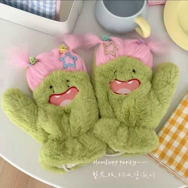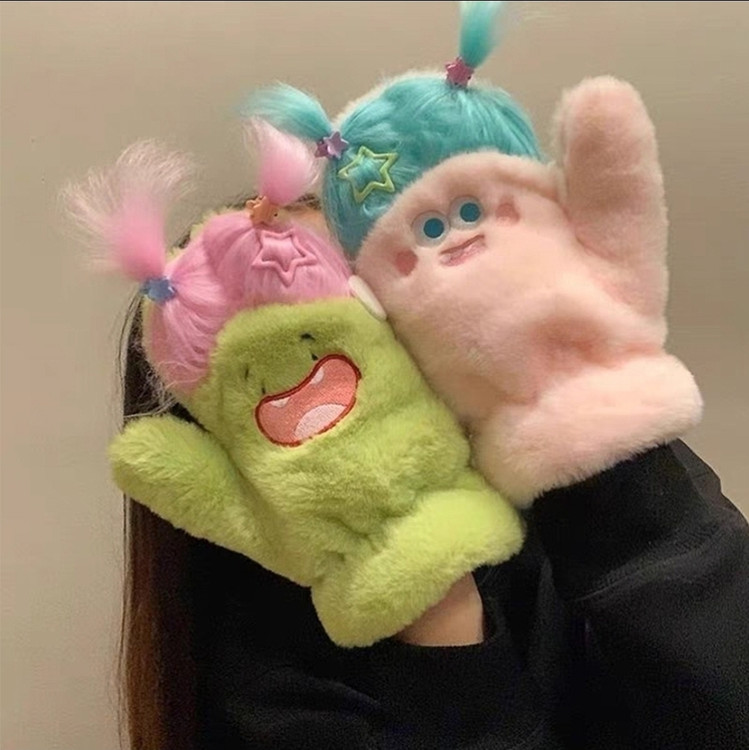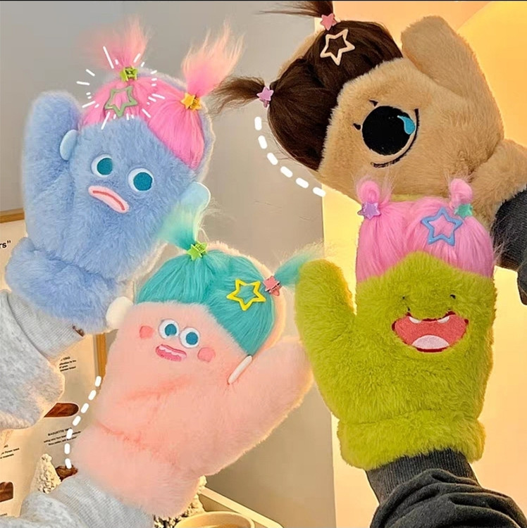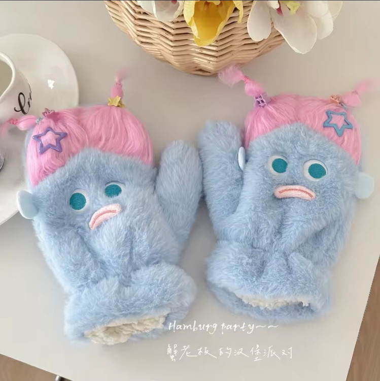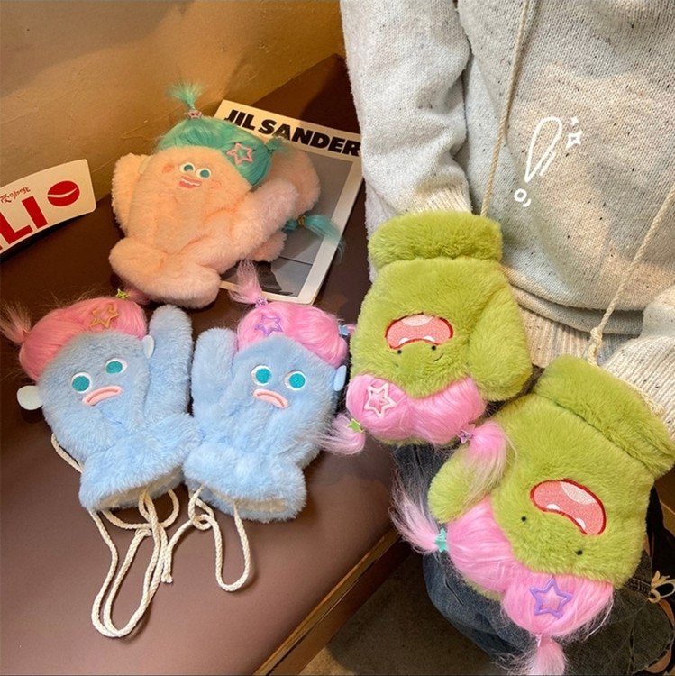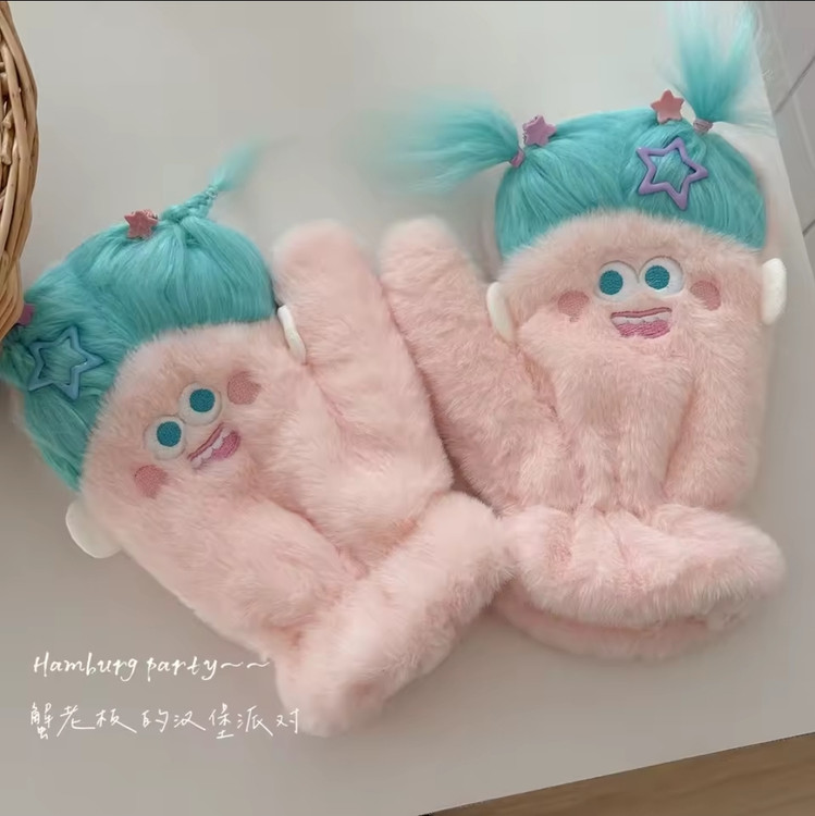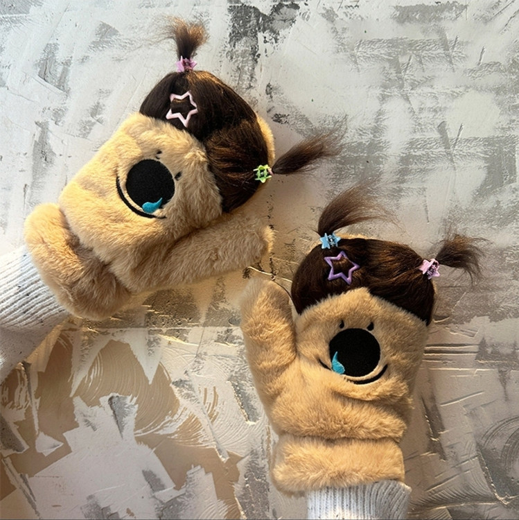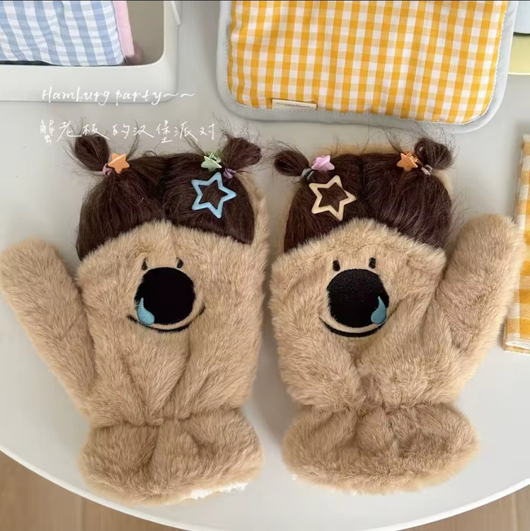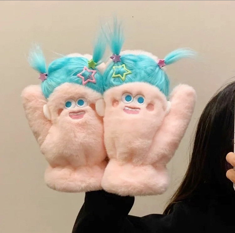 دستکش گرم فاننزی طرح خنگولک مو بلند همراه با اکسسوری جنس نرم