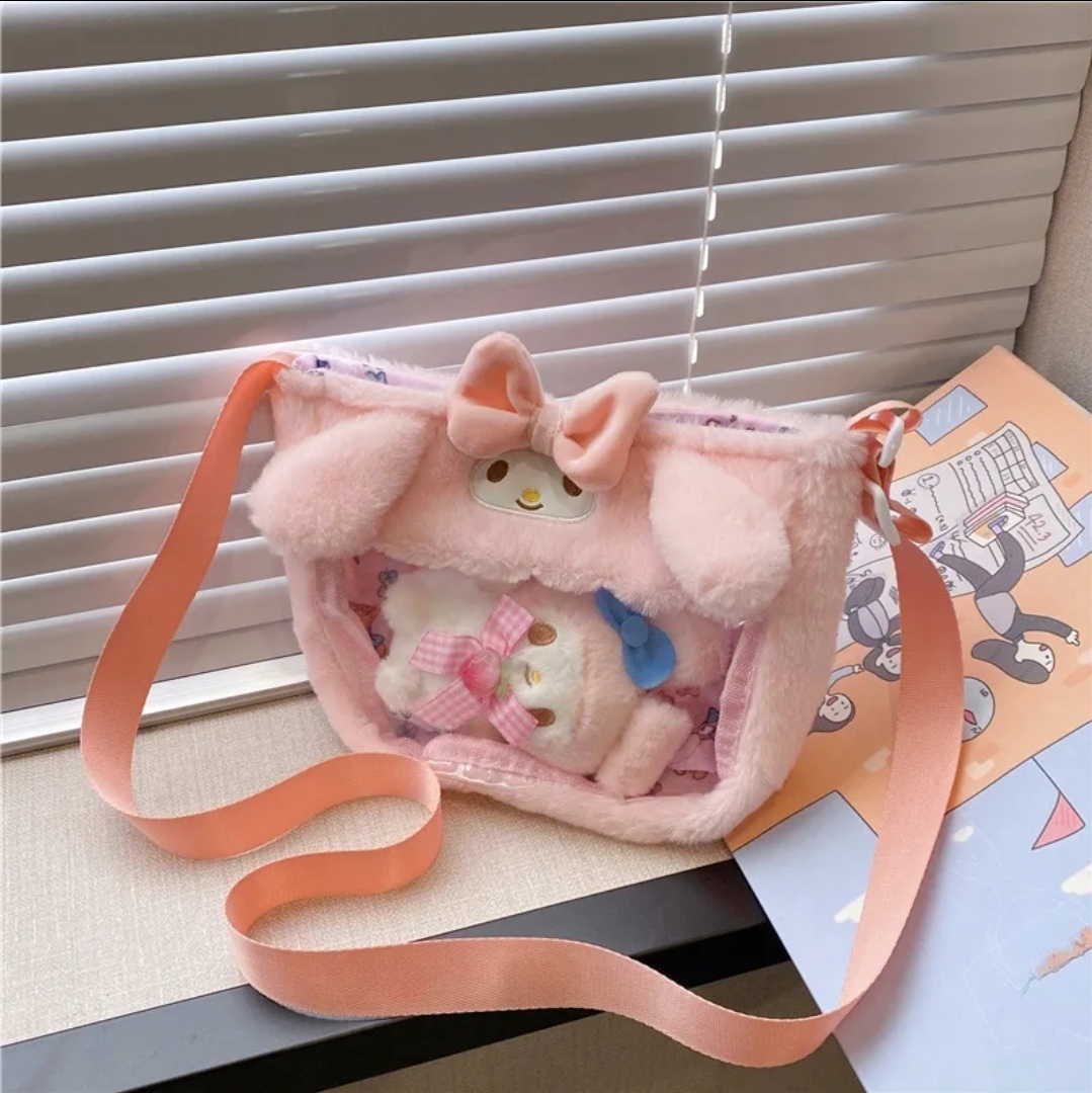 کیف دوشی فانتزی جلو طلقی طرح کرومی و‌دوستان به همراه عروسک جنس پولیشی و‌ وارداتی