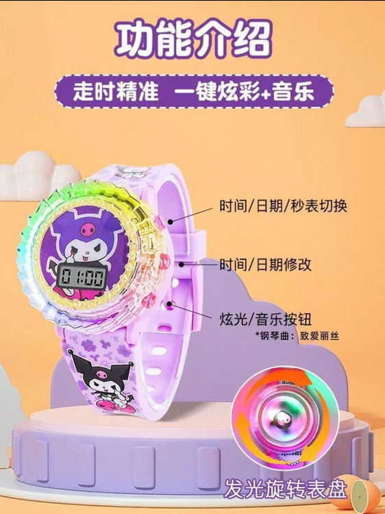 ساعت مچی اسپینردار و موزیکال وچراغ دار طرح کرومی و دوستان همراه با جعبه