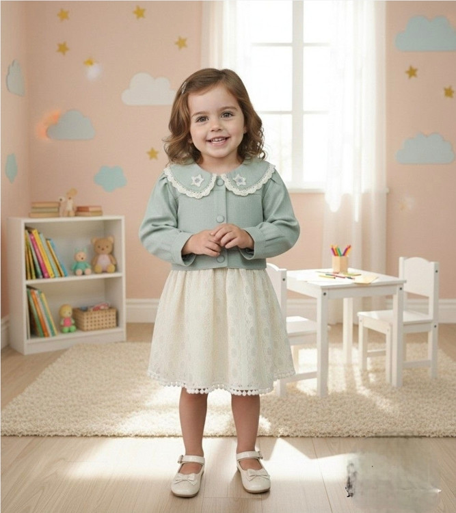 این سارافون و کت دخترانه با طرح ستاره و جنس گیپور درجه یک، یه انتخاب هوشمندانه برای مهمانیها و مجالس رسمیتره. کیفیت و زیبایی در کنار هم!