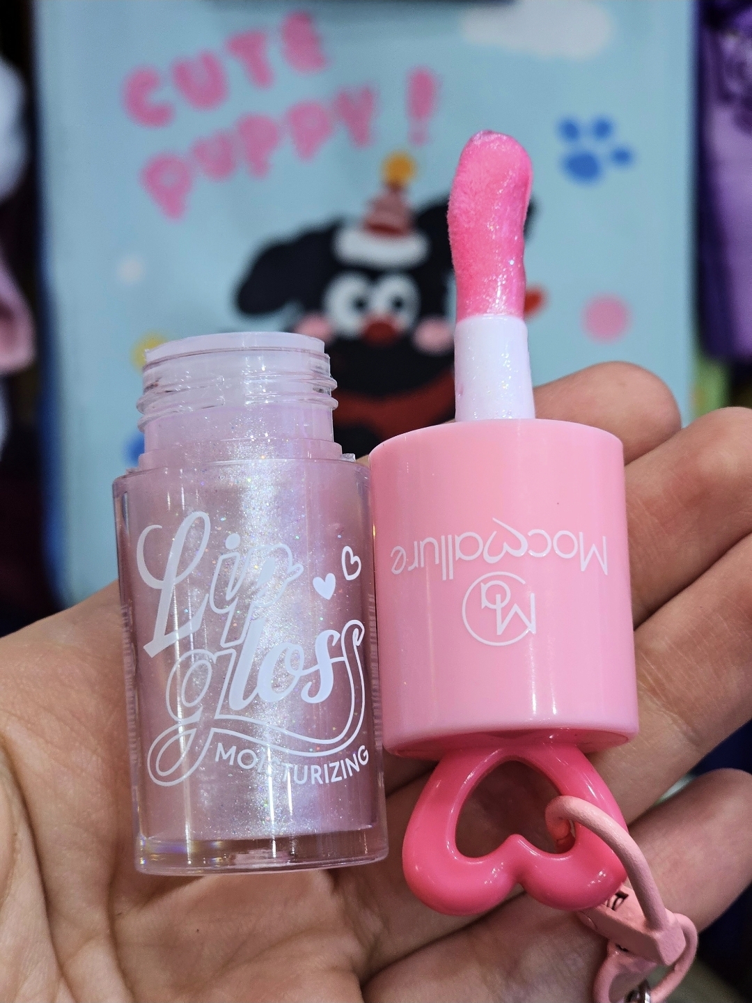 لیپ گلاس فانتزی شاین دار همراه با اویز پوم پوم دار